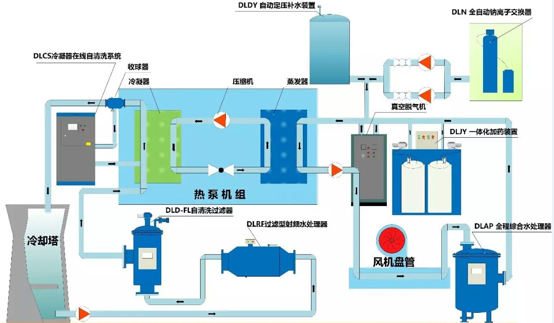 众所周知,中央空调经过长期时间循环运行后,空调冷冻水、冷却水系统、制冷主机及风机散热牌不可避免的出现更为严重的沉积物的附着(也就是在系统表面结垢)、微生物的大量滋生粘泥和设备腐蚀等问题,影响制冷机冷凝器的换热效率及水质控制问题。